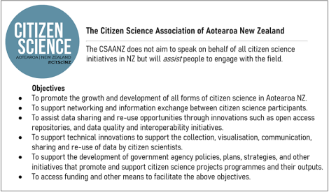 A group of nearly 20 citizen science practitioners, researchers, educators, coordinators, developers, movers and shakers gathered on Aug 10 in New Plymouth to formalise the Citizen Science Association of Aotearoa New Zealand (CSAANZ, #CitSciNZ for short). A celebratory launch is planned for the near future. This blog forms part of an emerging kaupapa for the fledgling association: sharing information through transparent processes.